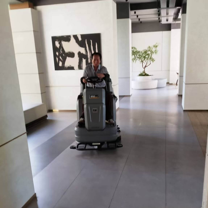 近日,台州保利珑璟府引入 MN-V75 驾驶式洗地机并投入社区日常清洁作业,为提升小区环境品质增添新助力,标志着社区保洁工作向高效化、精细化升级。 这款驾驶式洗地机专为住宅小区场景设计,集清水喷洒、地面刷洗、污水回收于一体,可一次性完成地砖、大理石等各类地面的清洁流程。相较于传统人工拖地清洁,其清洁效率大幅提升,单台设备每小时可清洁约 6000 平方米地面,效率提高 3 倍以上,且能深入楼道、大堂等区域的边角缝隙,解决了人工清洁盲区多的问题。 设备操作简便,驾驶灵活,可轻松穿梭于小区步道、单元门口等区域,同时配备大容量水箱减少加水频次。保利珑璟府物业负责人表示,将以新型清洁设备为依托,优化保洁服务流程,为业主营造更洁净舒适的居住环境。