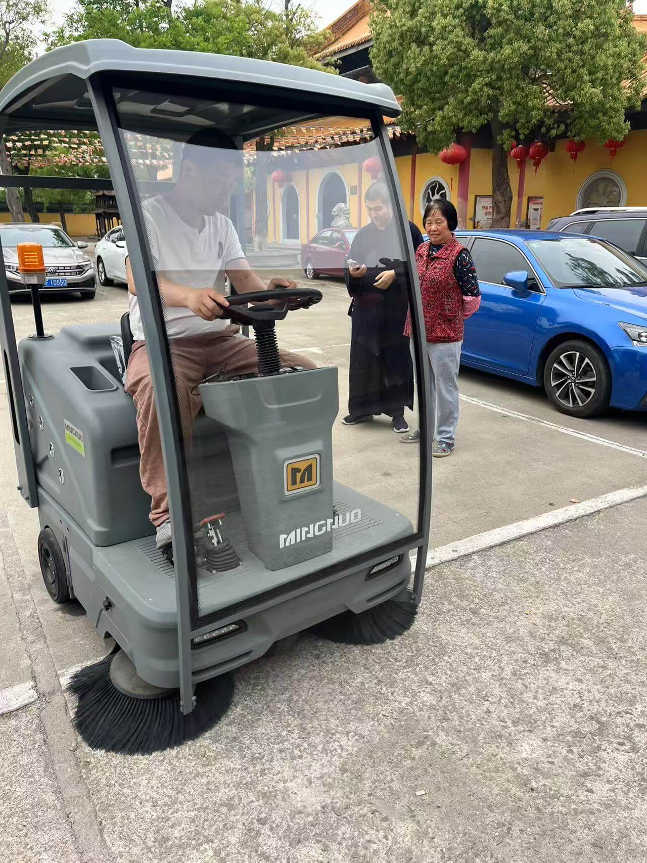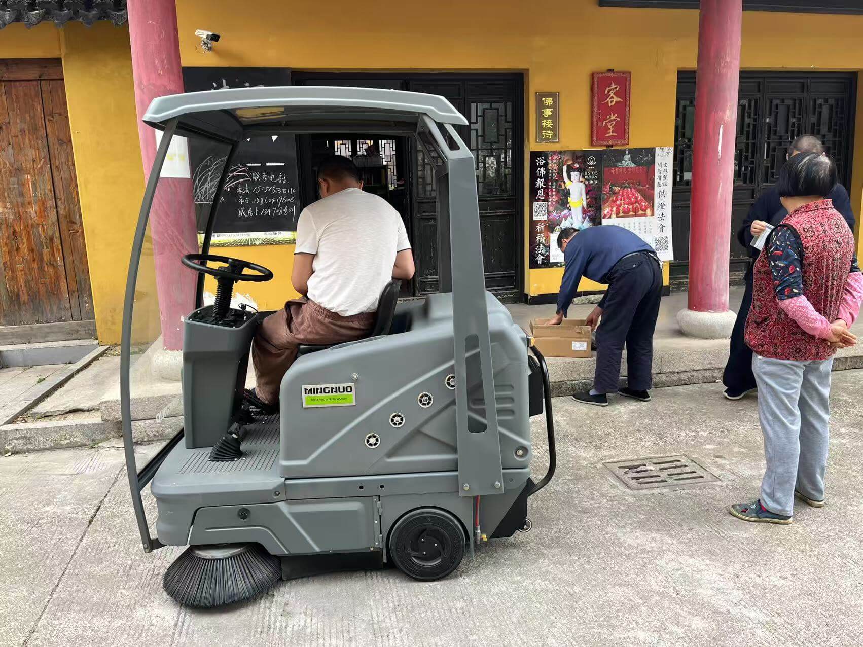 千年古刹,净地新颜!苏州宝寿寺为提升寺院环境品质,匠心引入明诺C200X驾驶式扫地机,以科技之力守护清净庄严。C200X凭借强劲吸扫一体设计,轻松应对青砖步道、广场落叶与尘埃,宽幅清扫效率提升300%,低噪运行不扰禅意;灵活机身穿梭殿宇回廊,人性化操控面板省时省力,无惧洒扫扬灰。智慧清洁与古朴禅韵相融,让修行之地更显通透无染,明诺以现代化环卫方案,助宝寿寺践行“扫地扫地扫心地”的修行真谛。