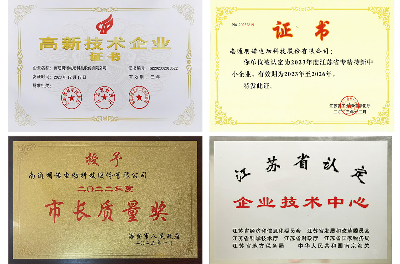 明诺在发展过程中坚持学习,在生产经营上采用ERP 管理系统,在思想上紧抓党团建设,完善的工会服务体系,让员工积极向上,努力工作。使公司成为国家高新技术企业、江苏省专精特新中小企业、江苏省认定企业技术中心,荣获海安市市长质量奖等省市政府机关多项表彰。
