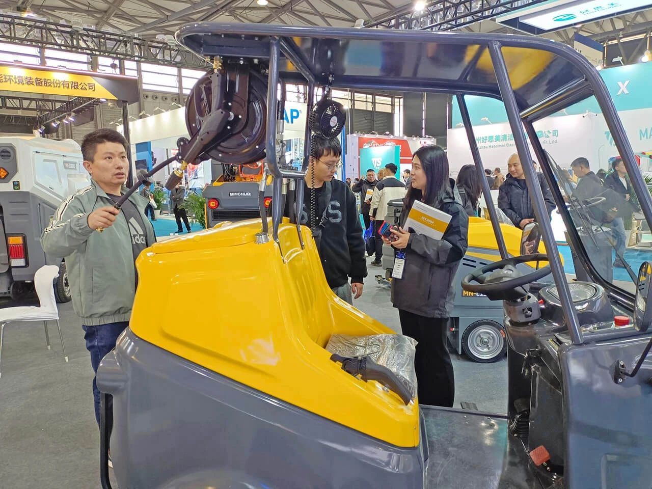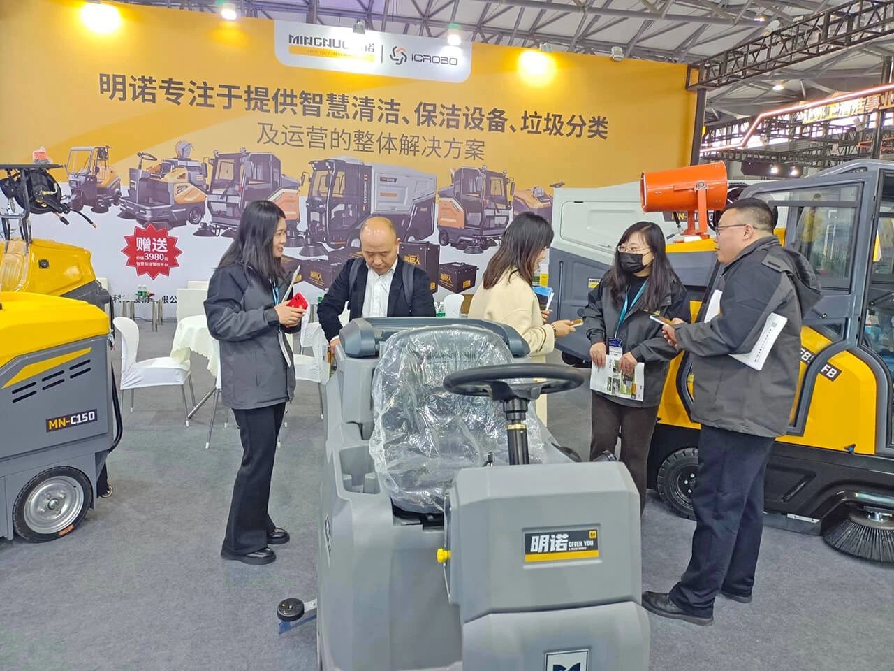 明诺本次展出的多款清洁设备融合了明诺在绿色环保、电动驾驶等方面的最新技术,能够有效提高物业环境卫生清洁效率,助力海量地产商、酒店管理公司、购物中心等行业智能化、绿色化转型。