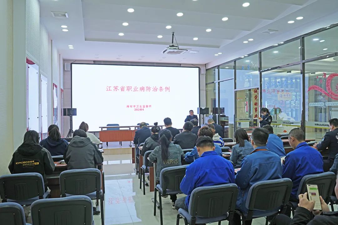 此次宣传周活动,海安市卫生监督所的领导为大家详细讲解了《江苏省职业病防治条例》的相关内容,并在宣讲期间向大家发放宣传手册和宣传用品。他们强调了职业病防治条例的重要性,并呼吁大家在日常工作中注意职业病防护,确保健康安全,鼓励大家积极参与宣传职业病防治相关知识。
