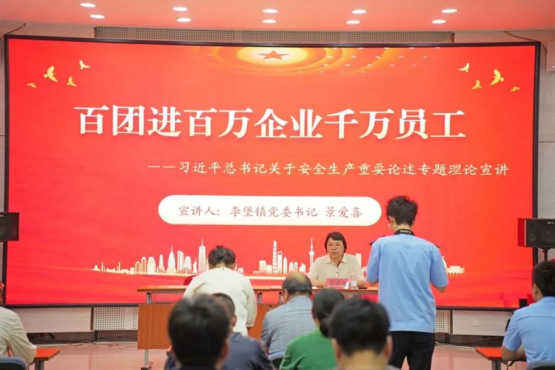 2024年7月12日下午,李堡镇党委书记景爱喜在安博app官网中国有限公司作“百团进百万企业千万员工”安全生产专题宣讲。南通明诺董事长夏明、党支部书记邵建根和四十几位职工及镇安监局的干部参加了此次活动。