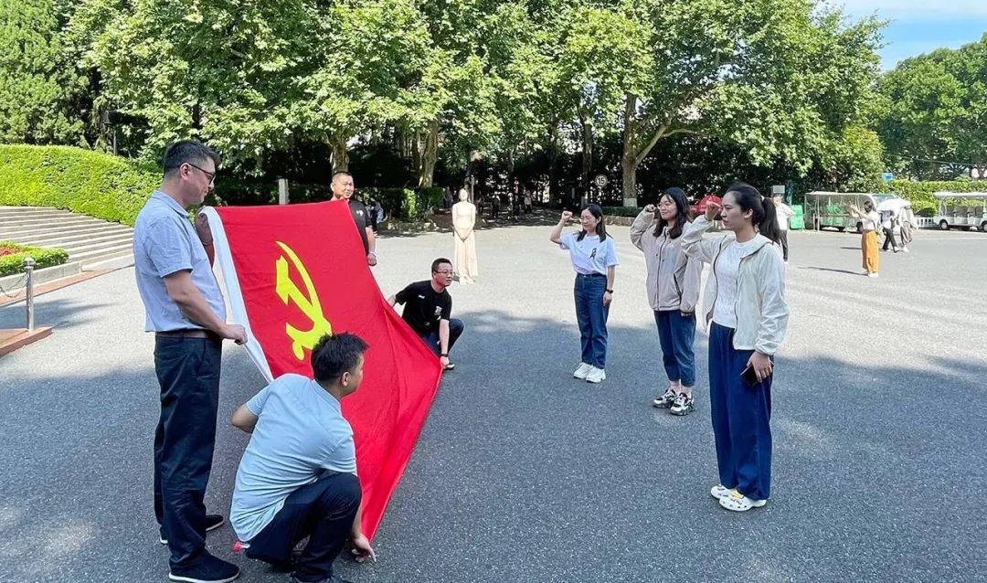 7月7日,明诺党员们来到雨花台烈士陵园,在这片革命圣地,全体党员庄严肃立,重温入党誓词,表达了对党的忠诚和为公司发展不懈奋斗的决心。宣誓活动后,大家在此合影留念,铭记这庄严而神圣的时刻。