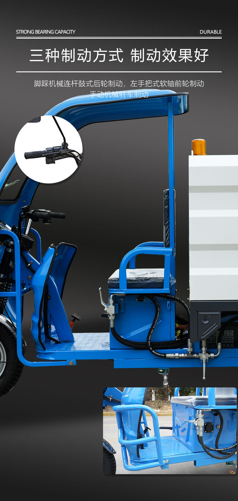 车头配置左、右测冲洗实时控制阀件,可轻松冲洗路面灰尘、树叶、油污等。