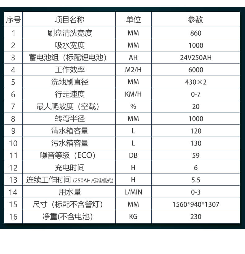 22 | 尺寸(标配不含警灯) | mm | 1555×955×1280(不含刷盘不含吸扒) 1645×1015×1280(含刷盘含吸扒) |