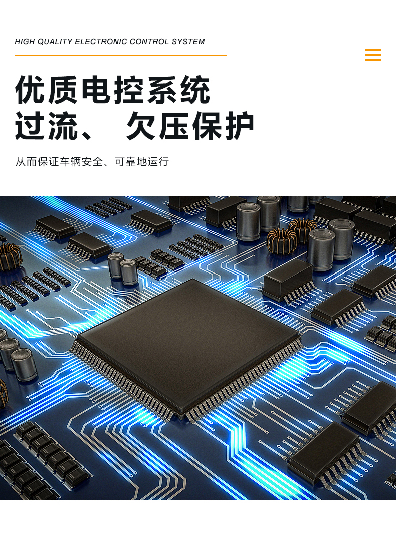 l优质电控系统, 过流、 欠压保护, 更安全。