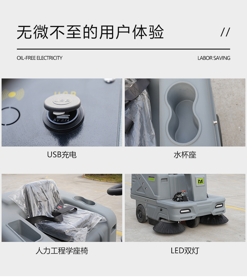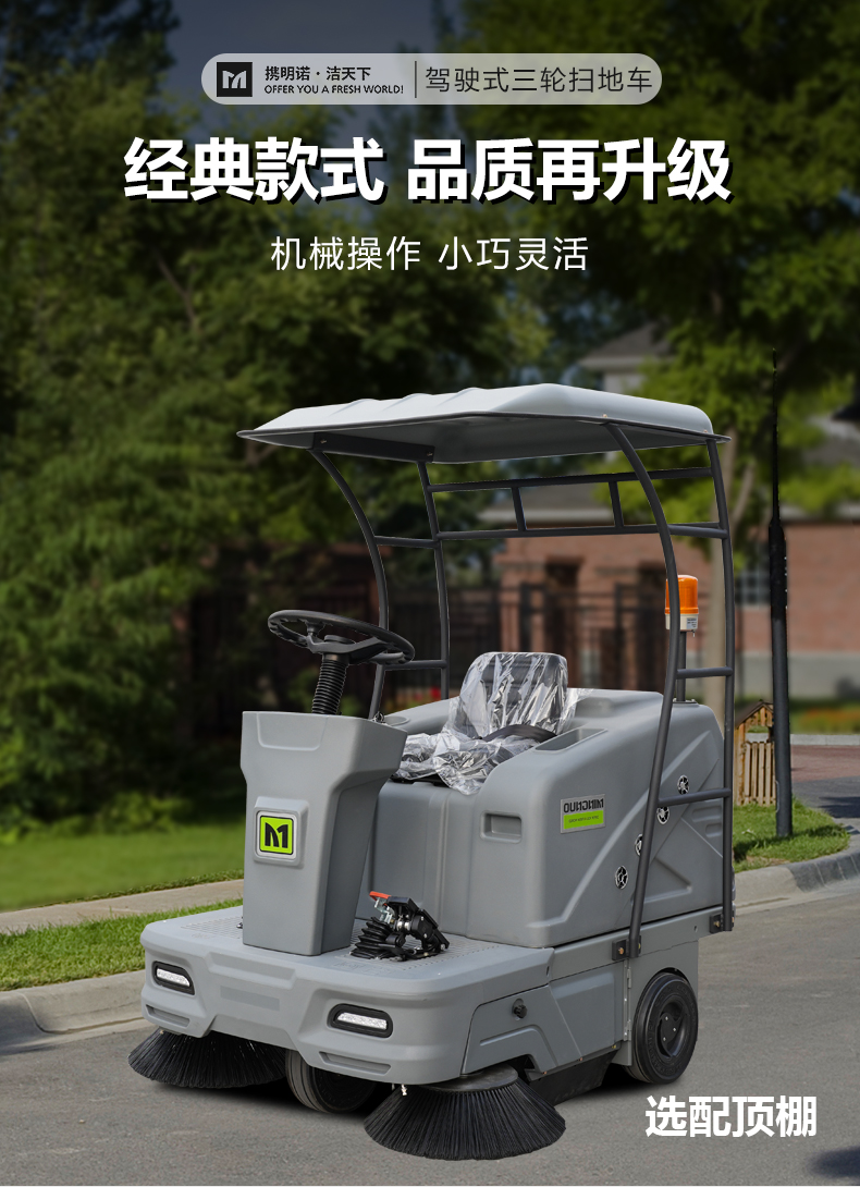 敞开式设计,可加装顶棚,驾驶位视野开阔,可以有效判断路况和观察处理各种地面垃圾;按键式操控按钮,让功能选择和切换都非常方便,让清洁更加轻松、舒适!