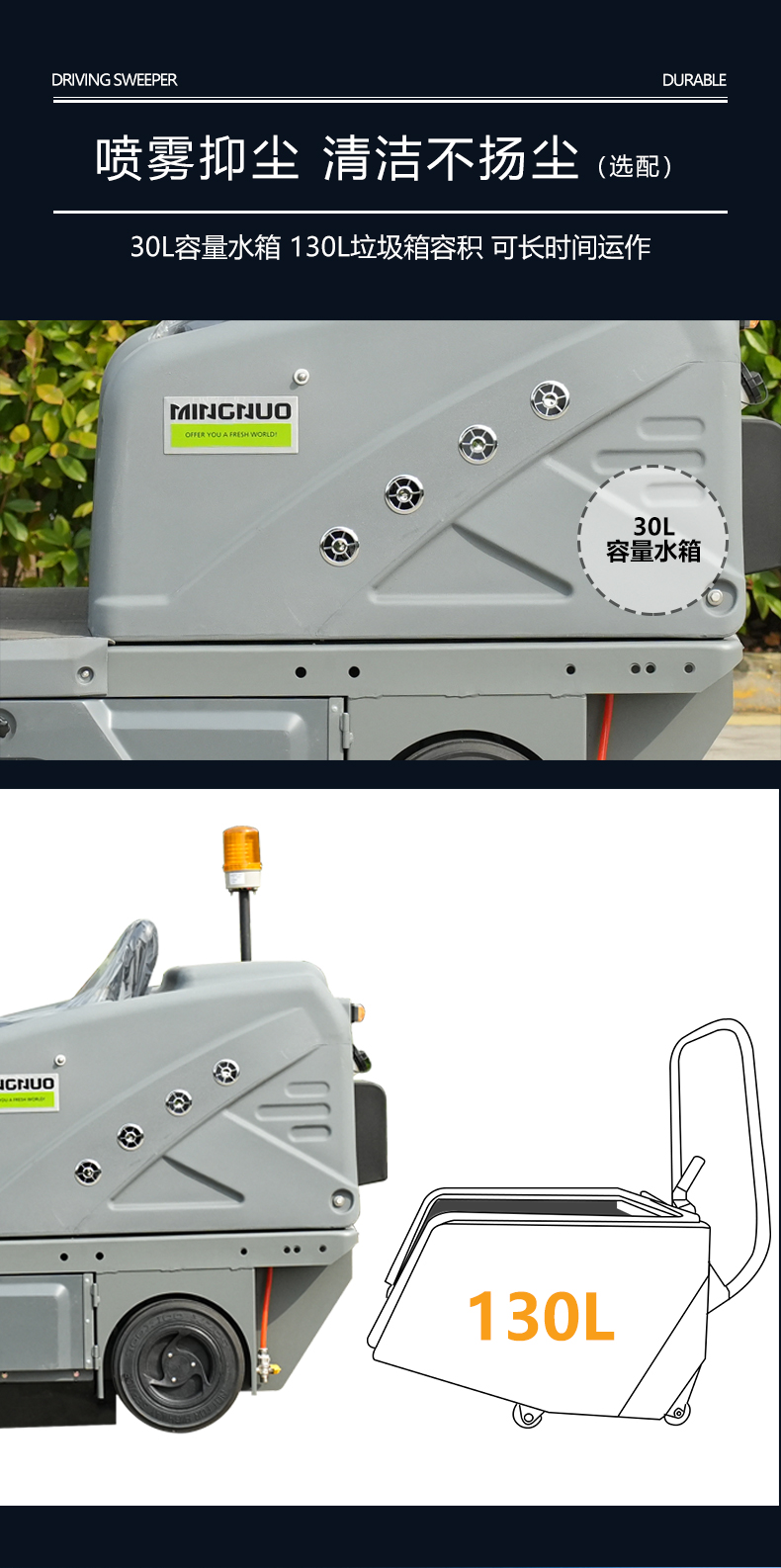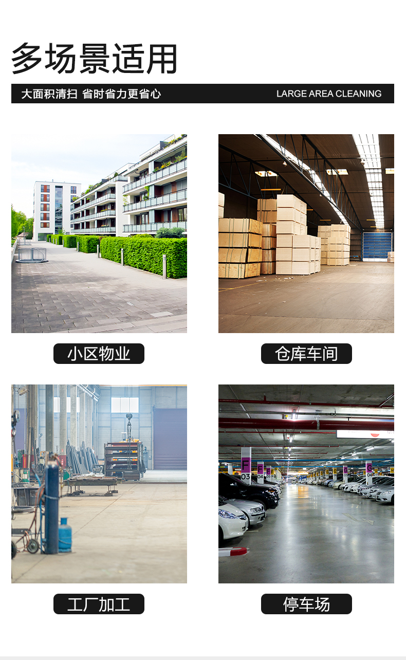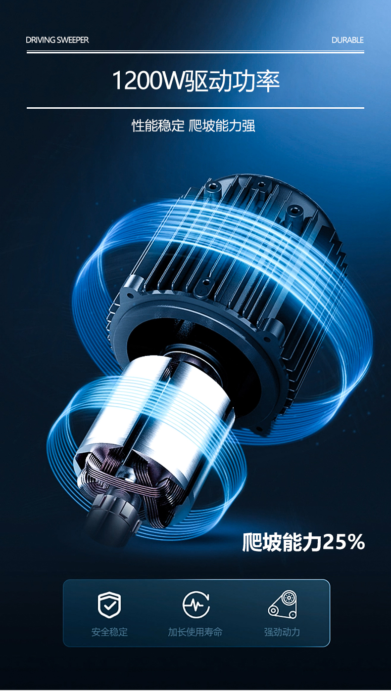 清扫宽度达1,300mm,可以有效清扫水泥,砂石,毛石等洗地机无法清洗的地面,有效处理烟蒂,各种生活垃圾,各种固体颗粒物灰尘,清扫效果更均匀,干净,有效替代30人以上的人工,降低保洁使用成本,提高清洁效果!