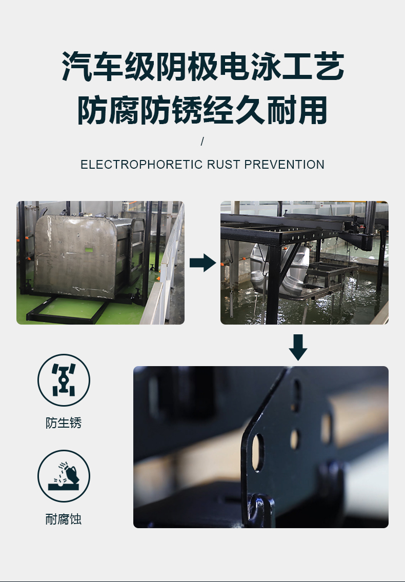 130L大尘箱设置,容纳更多垃圾,抽屉式设计,配有脚轮,让垃圾转运和倾倒更加方便。尘箱采用电泳防腐蚀处理,耐用。