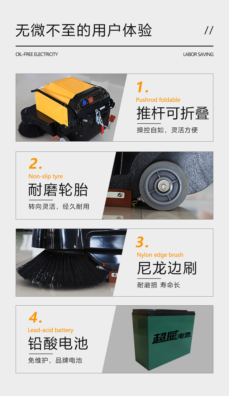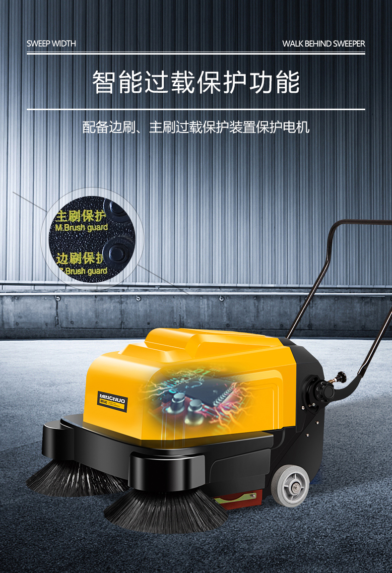 MN-P100AS手推式扫地机特别适合于大厅、候机候车室、医院、工厂、小区道路等场所的使用,清扫时无扬尘,无噪声,可以在人群中灵活穿梭,结构轻巧,推行轻便,维修简单。